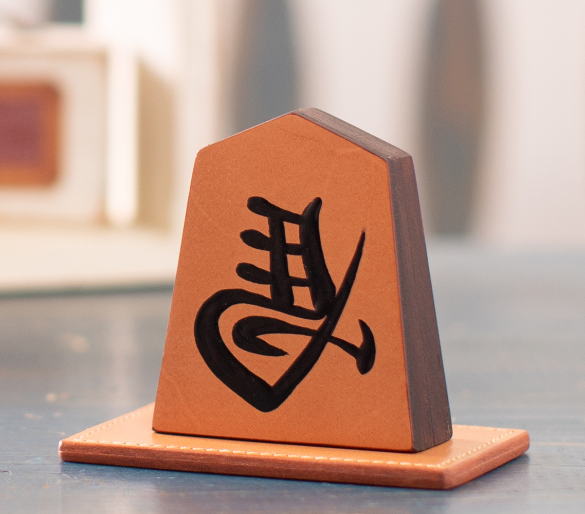 革でつくる、将棋の飾り駒